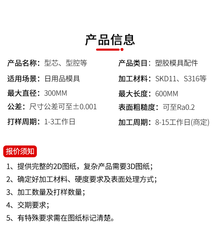 机加工类型: CNC、数控车、抛光 加工精度: 精整加工 加工材料: SKH51、S316等 最大直径: 300 最大长度: 600(依产品复杂程度而定) 公差: ±0 樱花视频. 001 表面粗糙度: Ra0. 05 打样周期:1-3天 加工周期:7-15天(复杂产品周期商定) 年最大加工能力:7000000套.